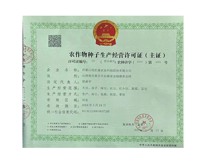 呂梁山花爛漫農(nóng)業(yè)科技股份有限公司是山西省農(nóng)業(yè)產(chǎn)業(yè)化重點(diǎn)龍頭企業(yè),公司成立于2008年,法人代表賀虎平,注冊(cè)資本1000 萬元,現(xiàn)有員工 30 人。公司位于興縣蔡家會(huì)鎮(zhèn)蔡家會(huì)村建有占地面積1萬多平方米生產(chǎn)區(qū)和辦公區(qū),年總加工雜糧能力達(dá)到4萬噸。擁有一套日精加工50噸谷子成套設(shè)備生產(chǎn)流水線;擁有一套日精加工30噸豆面、蕎面設(shè)備流水生產(chǎn)線;擁有一套日精加工50噸紅小豆、豇豆、綠豆、腎型黃豆、紅蕓豆設(shè)備流水生產(chǎn)線,2020年引進(jìn)省農(nóng)科院農(nóng)產(chǎn)品加工研究所谷子精深加工技術(shù),目前設(shè)計(jì)年產(chǎn)300噸的小米油加工一條龍生產(chǎn)線已經(jīng)安裝調(diào)試完畢,產(chǎn)品經(jīng)化驗(yàn)達(dá)到國家一級(jí)油標(biāo)準(zhǔn),并獲得兩項(xiàng)專利證書。主要產(chǎn)品有“山花爛漫”牌有機(jī)小米、綠色小米各種精美包裝系列;蔡家會(huì)村豇豆面、豌豆面等雜糧面、手搟豆面系列、以及有機(jī)精品雜糧系列。擁有“山花爛漫”山西省著名商標(biāo)。公司采用線下和線上銷售相結(jié)合的營銷模式。